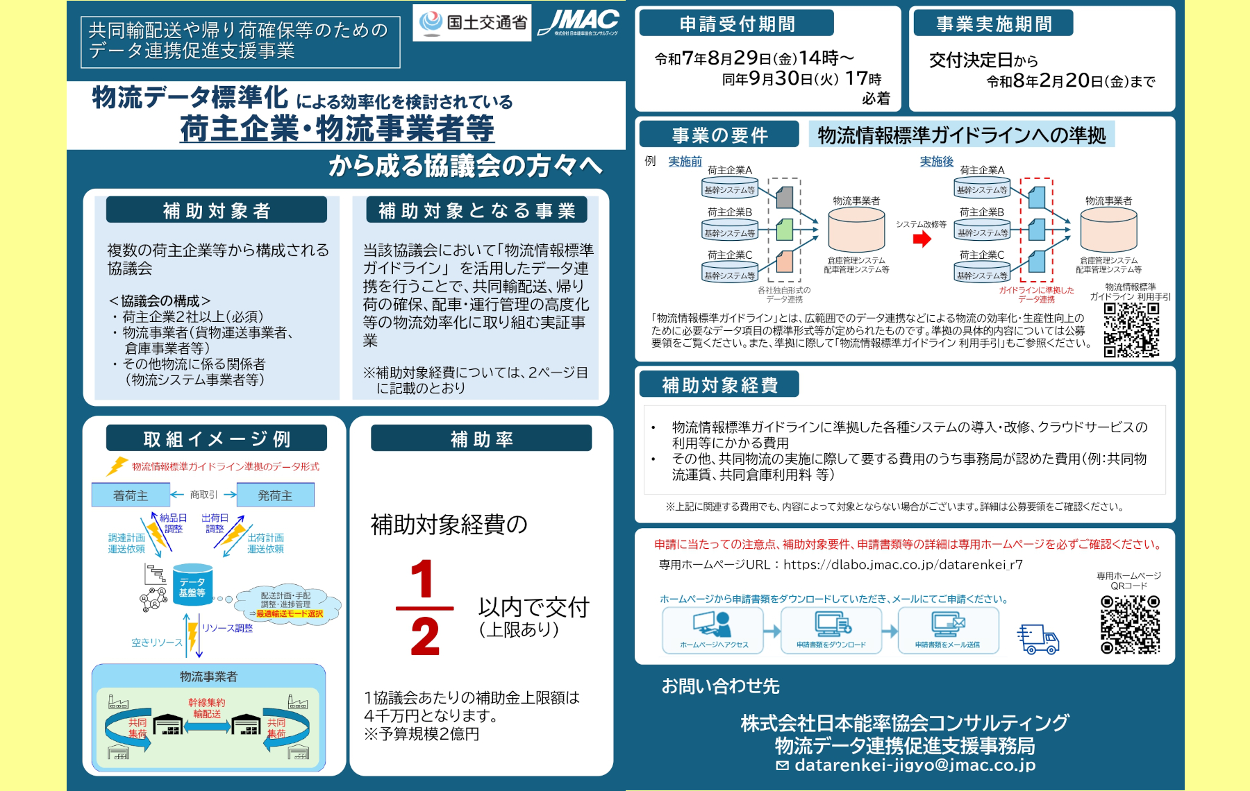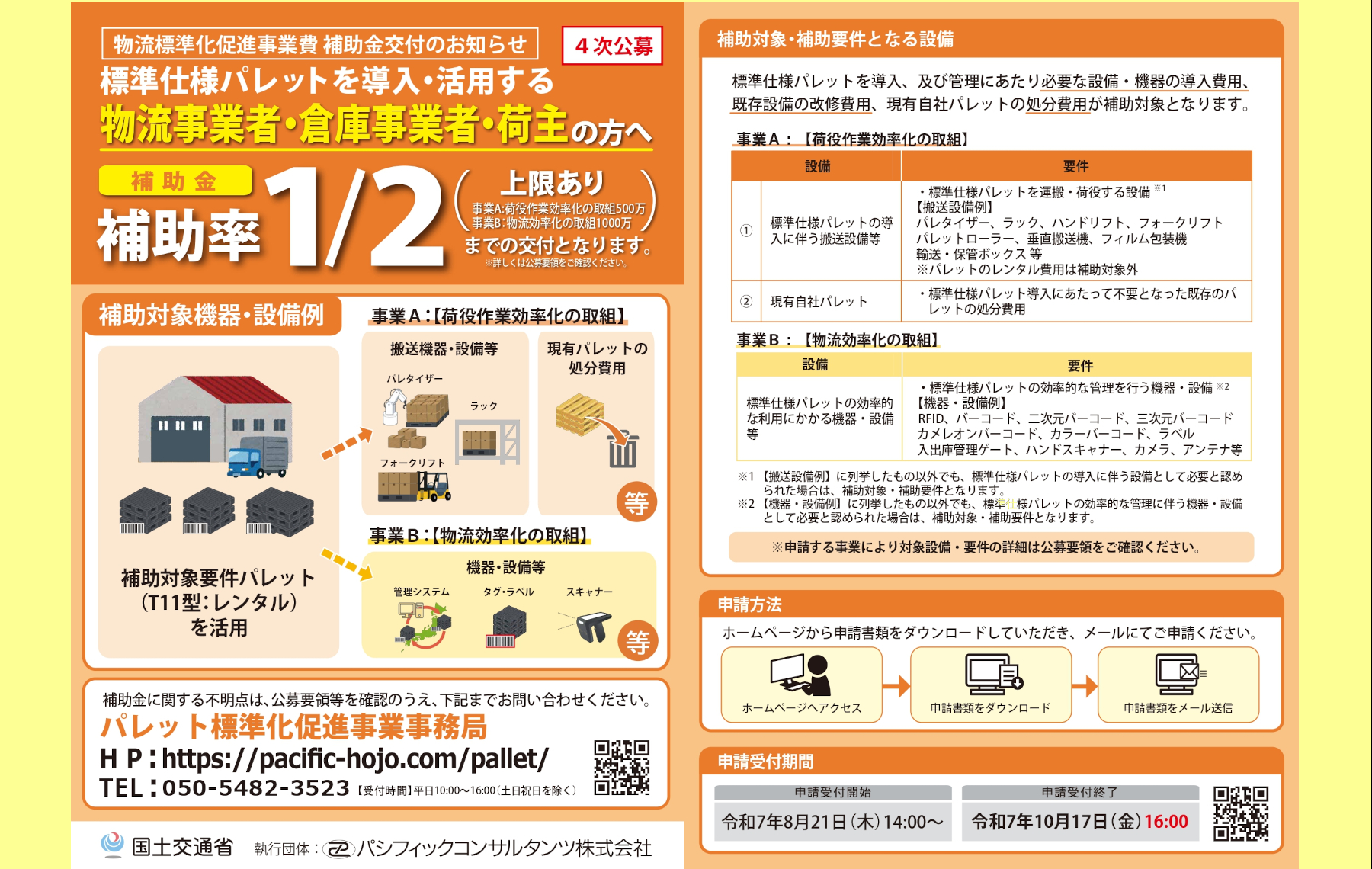 物流の標準化には、新たに設定、統一された共通ルールで運営していくための環境整備が必要です。標準仕様に適した機器の購入、システムの改修など、初期費用がどうしてもかかり、その負担は企業にとって決して軽いものではありません。そのため、国土交通省では対象となる費用の一部を補助する支援金制度を実施し、標準化を後押ししています。