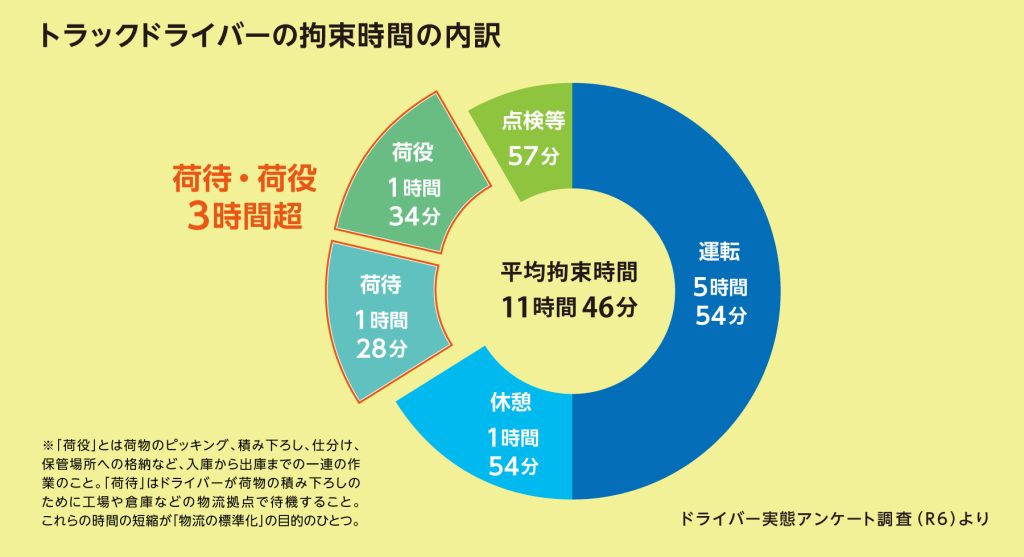 通信販売の商品を受け取った時、「会社によって段ボールのサイズが違う」と思ったことはありませんか。実は、これまで物流業界には段ボールの規格をはじめ、運搬用のパレットのサイズ、伝票の書式、データの形式などに特に規定はなく、使用する企業によりバラバラでした。その結果、段ボールの規格が違うとトラックに積みにくかったり、倉庫に並べにくかったり、伝票と商品の表記が違うことにより検品に時間がかかったり……と、ドライバーの拘束時間や保管スペースを無駄に増やす原因になっていたのです。そこで、こうした物流のハード面、ソフト面ともに標準化し、作業の効率化や省スペース、物流現場の負担を可視化することが「物流の標準化」の目的です。