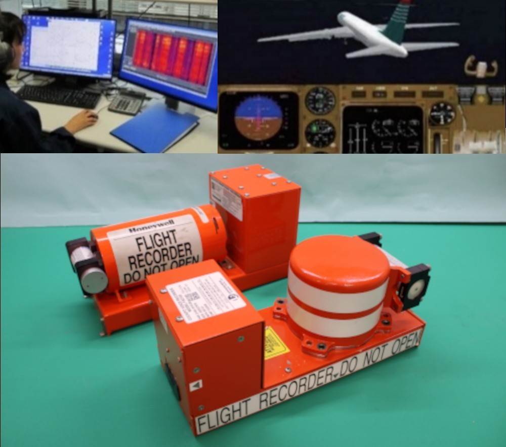音声記録の解析(左上)、アニメーションによる状況の再現(右上)、フライトレコーダー(下)