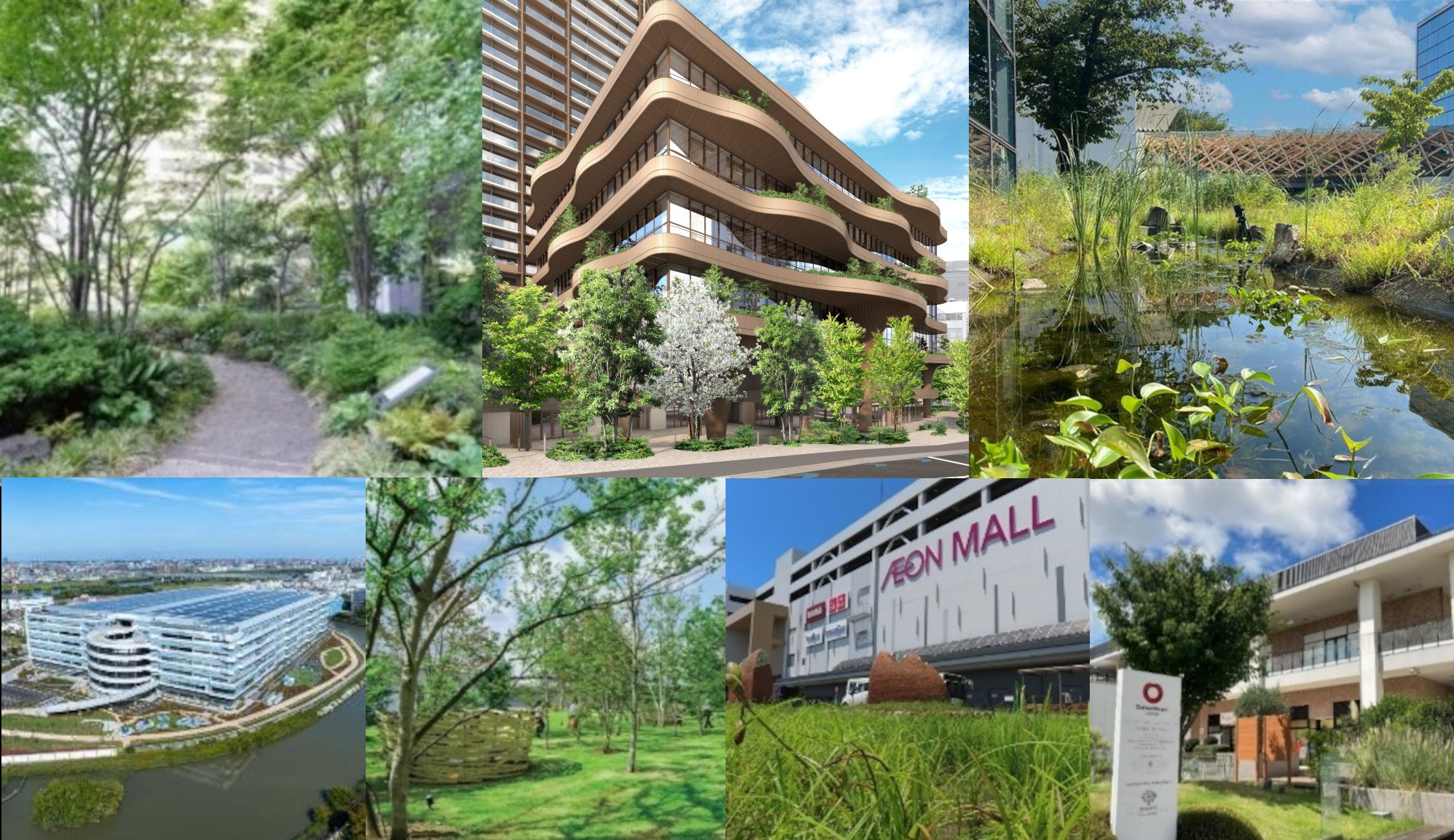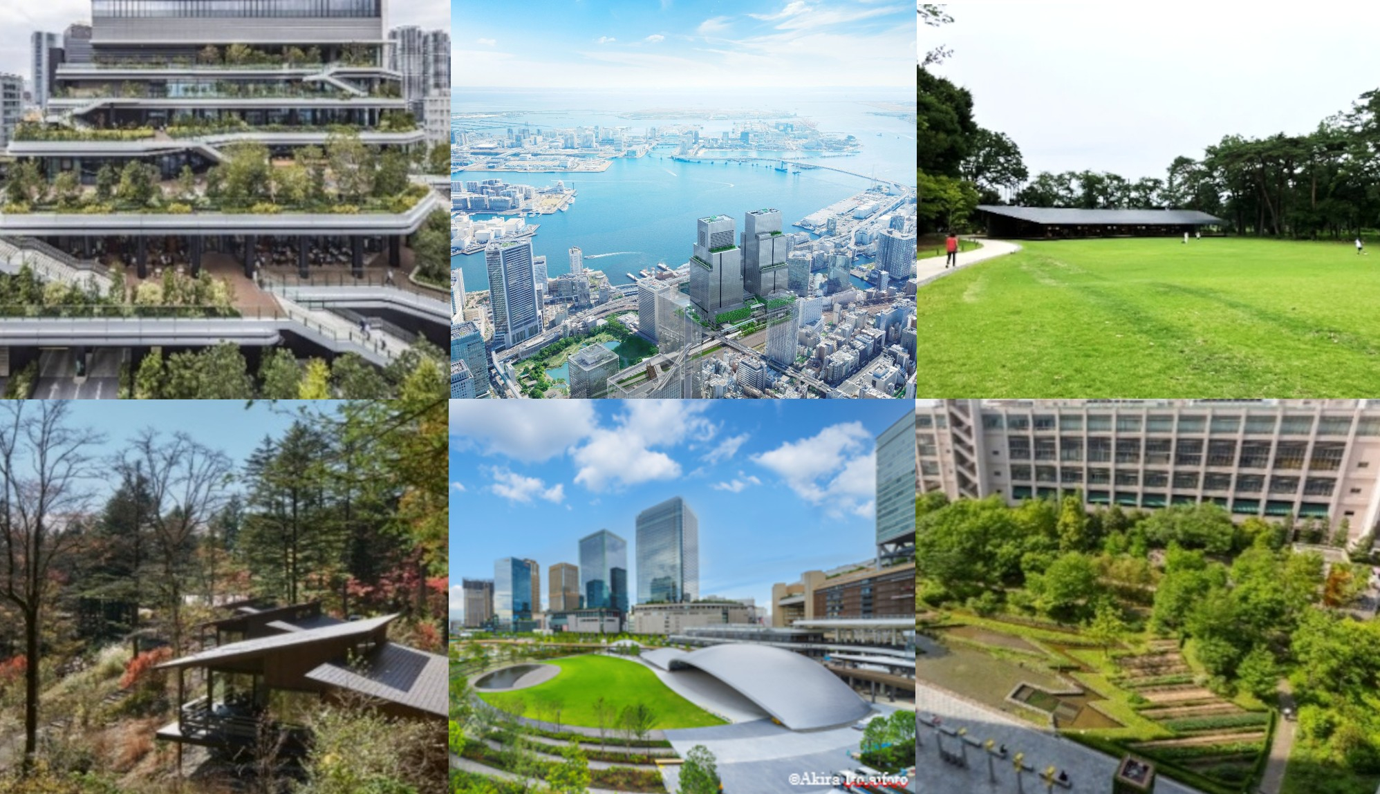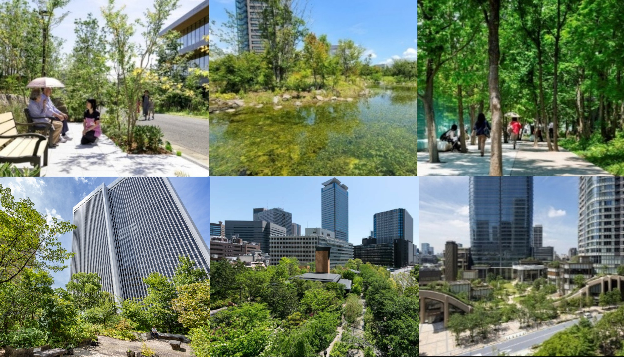上段(左から):新柏クリニック、竹中技術研究所(調の森 SHI-RE-BE)、大手町タワー(大手町の森)