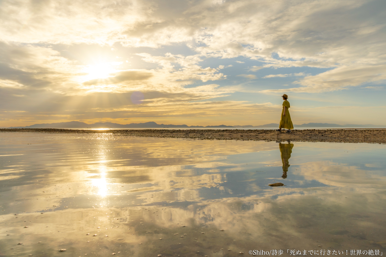 例えば、「モンチッチ海岸」とも呼ばれる松山市の立岩海水浴場は、私が見つけた絶景のひとつです。干潮時に現れる潮だまりの表面が鏡の役割を果たし、空や人を映した景色に出会えます。このような景色を見られる場所として、以前から香川県三豊市の父母ヶ浜が知られていたので、そこから続く愛媛県の海岸でも同じ景色が見られるのではと推測。似たような条件の場所を探して見つけ出したのがモンチッチ海岸でした。私が最初に発見したというわけではないかもしれませんが、県の観光課の方や地元の方もご存じなかった場所でしたので、愛媛の新たな魅力の紹介につながったのではないかと思います。