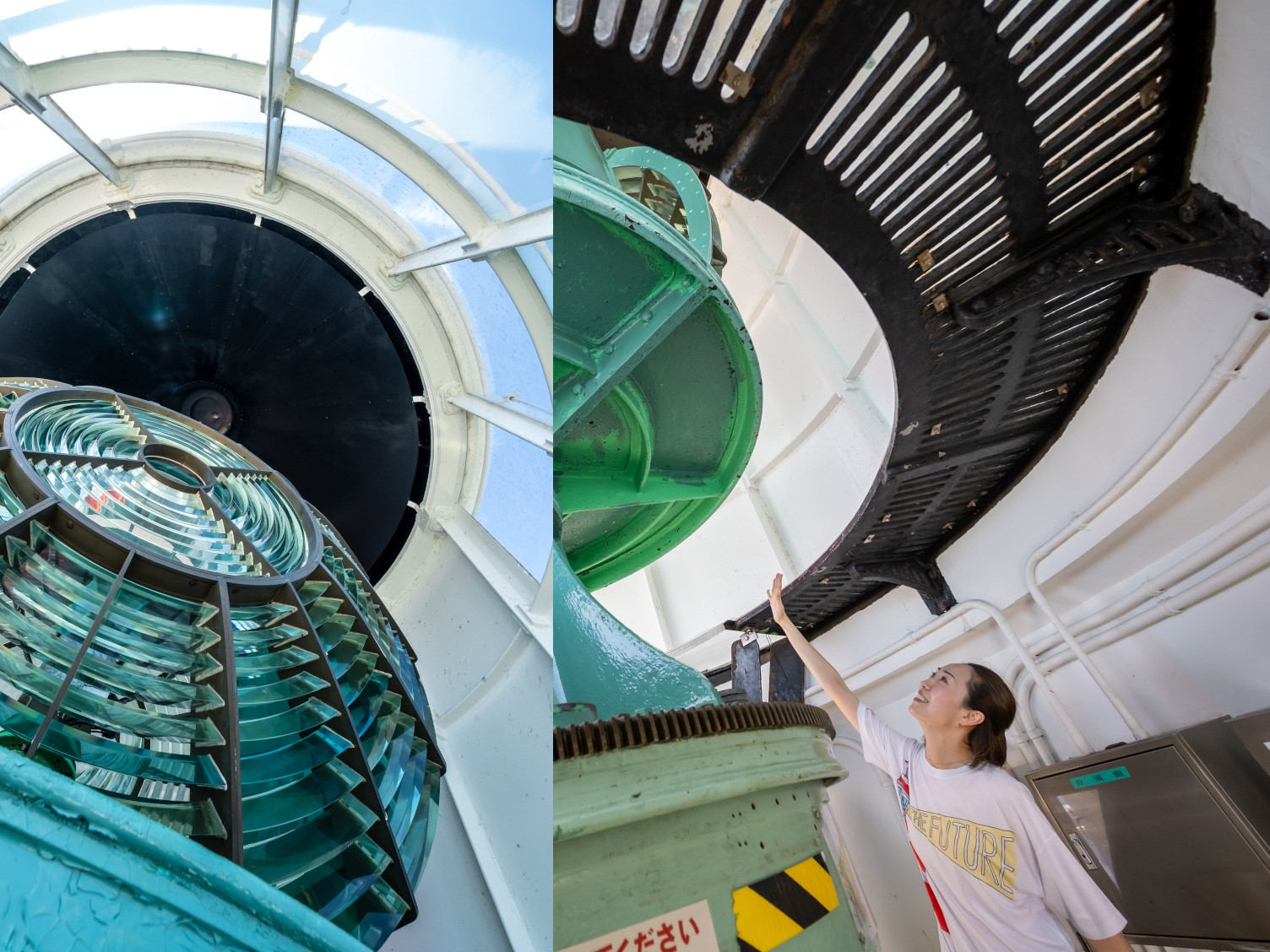 灯台の中でも、私が最初に興味を抱いたのは、灯台の光源を集めて遠くまで届ける機能を持つフレネルレンズです。このレンズは大きなものだと直径3メートル程度あり、精巧なカッテイングによりビーム状の光の帯を遠くまで放って、船舶に灯台が立っている岬の方位を伝えます。写真を見るだけでもその美しさは伝わると思いますが、間近で見るとまるで宝石のようで、たちまち虜になりました。