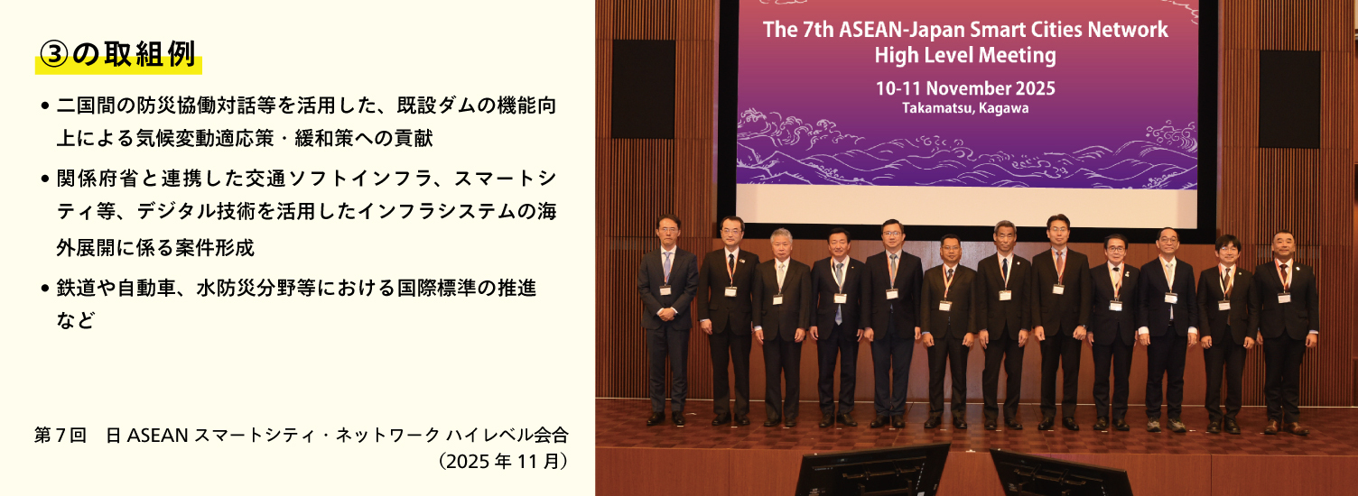 ③はDX・GX・気候変動、環境関連の取組、デジタル分野関連の取組、防災分野の取組、国際標準の策定等の社会的な変革をチャンスと捉え、新たな市場とルール整備を日本が主導することで機動的な対応を図るものです。こうした分野は政府間で決めていく部分も多く、そうした場合は国際標準を日本仕様に類する条件にすることで日本企業の参画支援にもつながるでしょう。