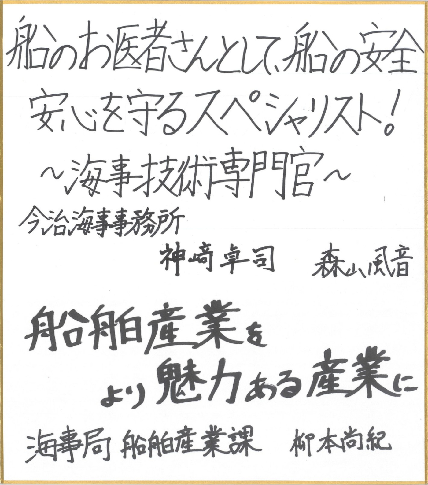 造船業界では、脱炭素などを契機とする「ゲームチェンジ」が進んでいます。日本の造船業の建造シェアは世界3位に後退していますが、ゼロエミッション船の開発で得られた知見や省エネ技術の高さを活かし、造船・舶用・海運事業者や関係団体の皆様と協力して、「次世代船舶受注量の世界トップシェア」という目標を達成したいと考えています。新たなチャンスに満ちた造船業界に可能性を感じて、若い方にもぜひ参加してほしいと思います。